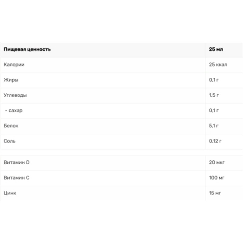 - Калории 25 ккал
