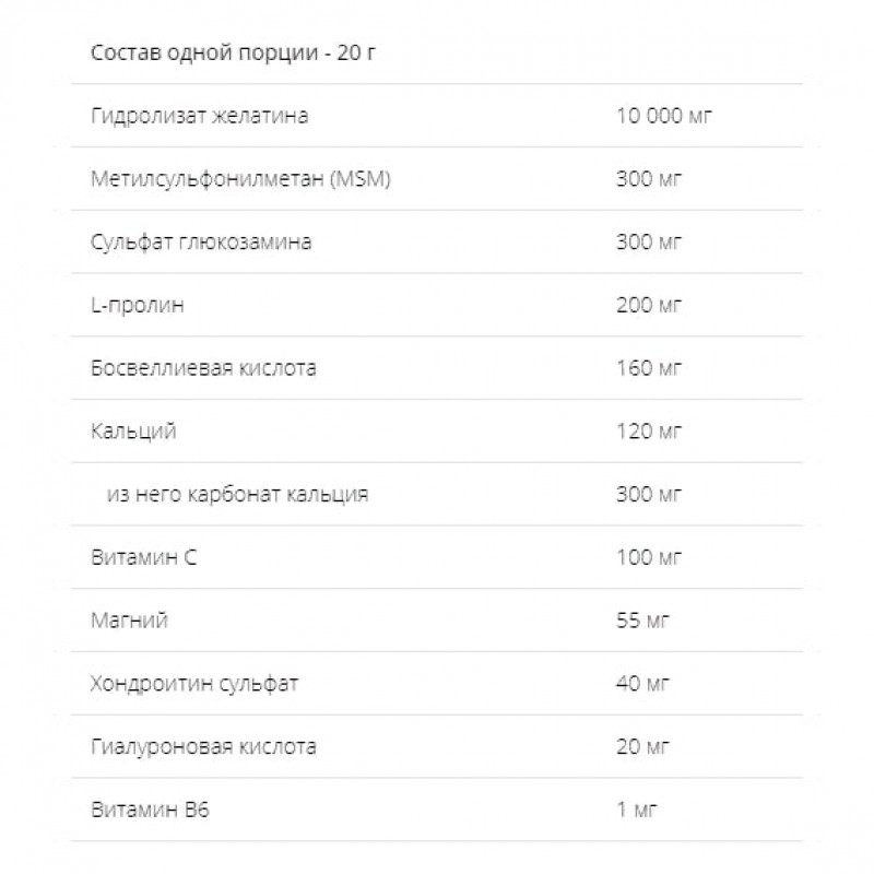- Комплекс, который улучшает производство суставной жидкости в организме. Тем самым снижается риск травмы во время больших нагрузок