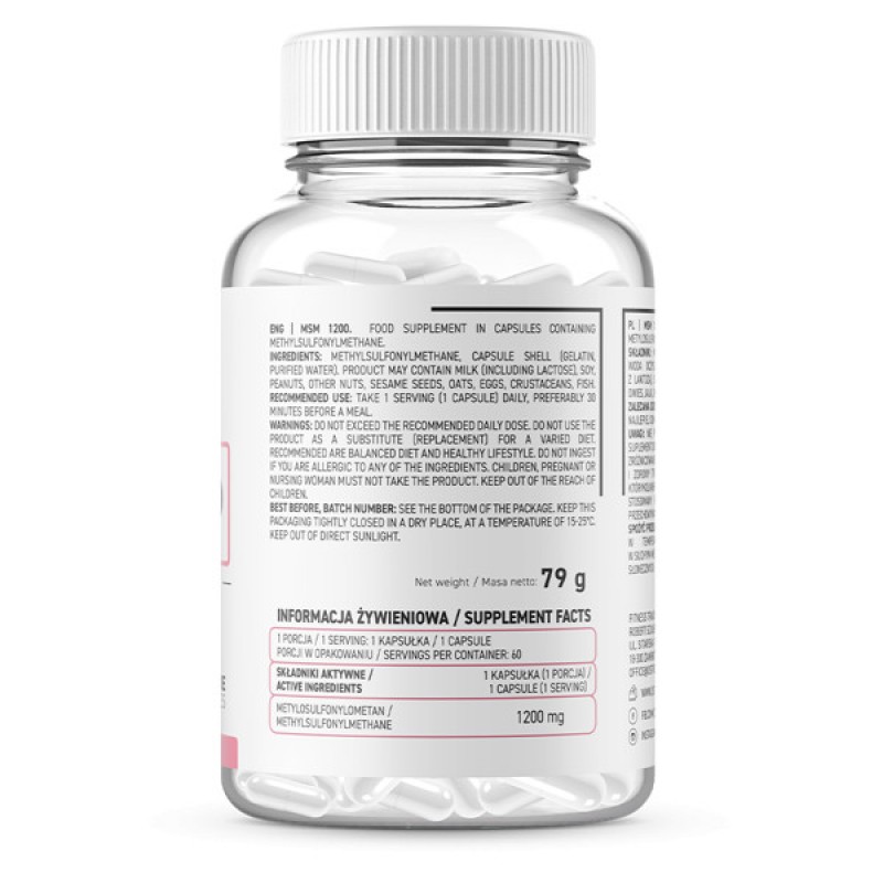 Использование данной добавки позволяет снизить болевые ощущения в суставах и связках, при минимальном риске развития побочных эффектов. Это делает метилсульфонилметан привлекательным средством в бодибилдинге и пауэрлифтинге. Совместное использование MSM и глюкозамина повышает эффективность в борьбе с остеоартритом. Метилсульфонилметан участвует в обновлении клеток, мембраны начинают лучше пропускать питательные вещества. Стенки клеток при недостатке MSM становятся плохо проницаемы для питательных веществ.
