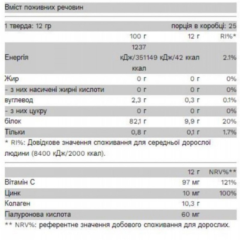 - Содержит гиалуроновую кислоту, цинк и витамин С, усиливающие его пользу для кожи, волос, ногтей и общего здоровья. Витамин С не только поддерживает кожу, кости и сосуды, но и укрепляет вашу иммунную систему. А цинк обеспечивает здоровье вашей кожи, волос и ногтей.