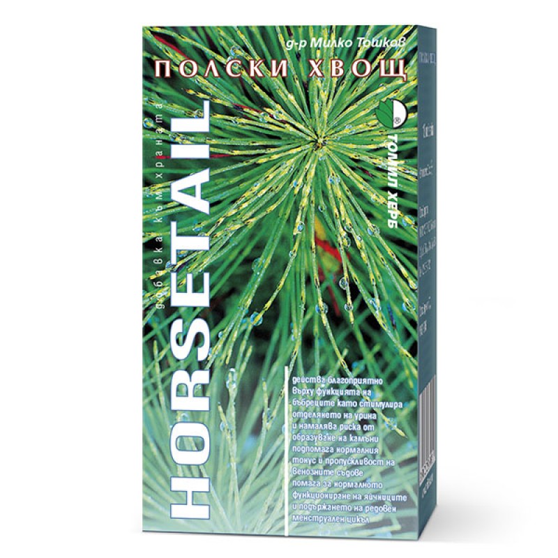 Таблетки Tomil Herb Хвощ полевой благоприятно влияет на функцию почек, стимулируя экскрецию с мочой и уменьшая риск камней. Помогает нормальному тонусу и проницаемости венозных сосудов. Помогает нормальному функционированию яичников и поддерживает регулярный менструальный цикл. Доктор Тошков лечит пиелонефрит и камни в почках, нерегулярные и болезненные менструации с помощью полевого хвоща.