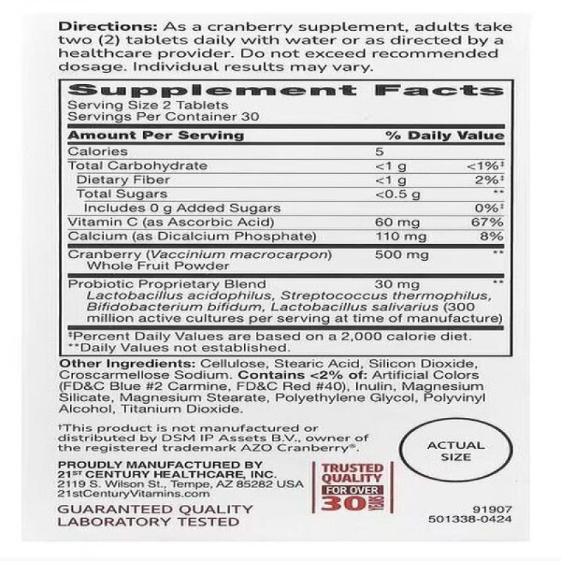 Таблетки из ягод клюквы с пробиотиком от 21st Century — это удобный способ получить преимущества клюквенного сока без терпкого вкуса и добавления сахара! Теперь вы можете легко выпить стакан клюквенного сока, содержащегося в суточной порции из 2 таблеток!