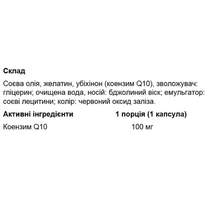 - Источник коэнзима Q10 - одна порция пищевой добавки обеспечивает организм 100 мг убихинона.