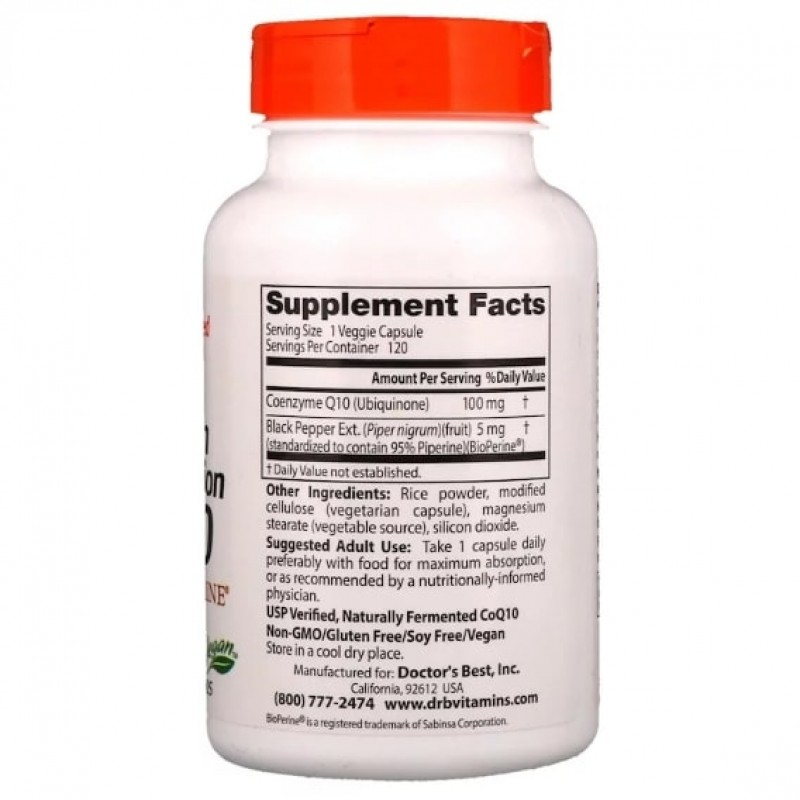 Коэнзим Q10 с высокой степенью всасывания от Doctor's Best содержит чистый коэнзим Q10 (убихинон) и BioPerine. Коэнзим Q10 поддерживает работу сердца и способствует выработке энергии в клетках. Он необходим для производства АТФ (аденозинтрифосфата), особенно в сердце. Стресс, свободные радикалы, прием статинов и возраст влияют на уровень коэнзима Q10 в организме. Коэнзим Q10 очень важен для выработки энергии, сокращения мышц и синтеза белка. В ходе исследований было доказано, что BioPerine улучшает усвоение коэнзима Q10.