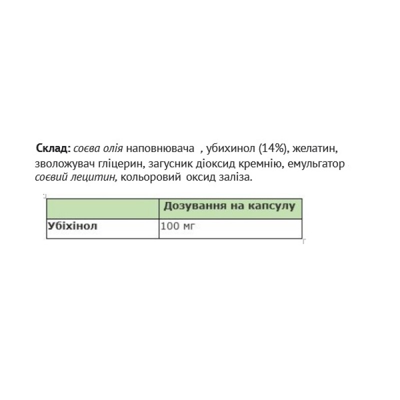 Убихинол одна из форм коэнзима Q10, присутствует в каждой клетке и играет важную роль в процессах энергообеспечения организма. Способствует замедлению процессов преждевременного старения и поддержания сердечно-сосудистой системы.