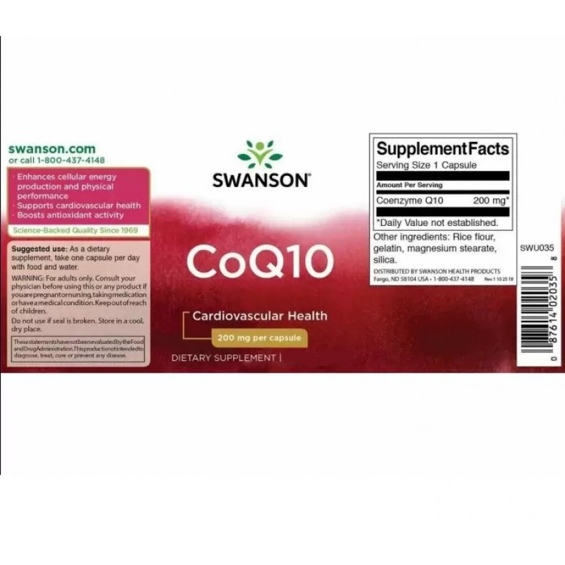 Добавка Swanson'S CoQ10 200 мг производит аденозинтрифосфат (АТФ) в организме, который создает энергию. Коэнзим Q10 также известен как убихинон. Каждая капсула содержит мощный 200 мг CoQ10.
