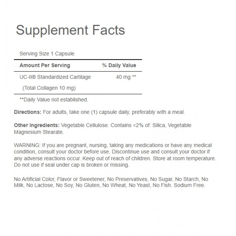 - UC-II® Standardized Cartilage (Total Collagen 10 mg) - 40 mg