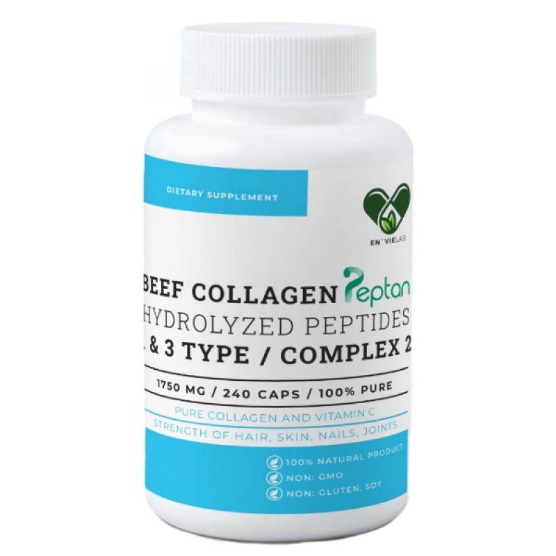 Коллаген с Витамином С для суставов, кожи и волос 1750 мг. в капсулах En'vie Lab COMPLEX 2 BEEF - это фундаментальное решение для вашего здоровья и красоты. Позвольте своему телу ощутить невероятное обновление и восстановление с помощью этого продукта!