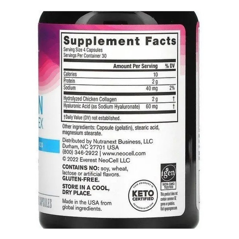 - Коллаген 2 типа от NeoCell является полным комплексом, который содержит глюкозамин, хондроитин и гиалуроновую кислоту - необходимые питательные вещества для поддержания и восстановления хрящевой ткани и обновления кожи.