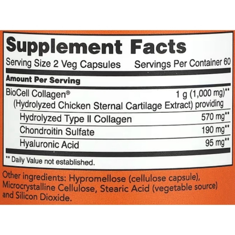 Коллаген BioCell гидролизованный II типа (Biocell Collagen) от NOW Foods - это запатентованный, предварительно обработанный, комплекс из грудного хряща цыпленка, который содержит природный гидролизованный коллаген и другие природные элементы здоровых соединительных тканей, включая хондроитин и гиалуроновую кислоту. Коллаген BioCell поможет вам поддерживать здоровую функцию суставов, обеспечит комфорт при движении и крепкую соединительную ткань, поддерживая нормальный уровень влажности в стареющей коже.