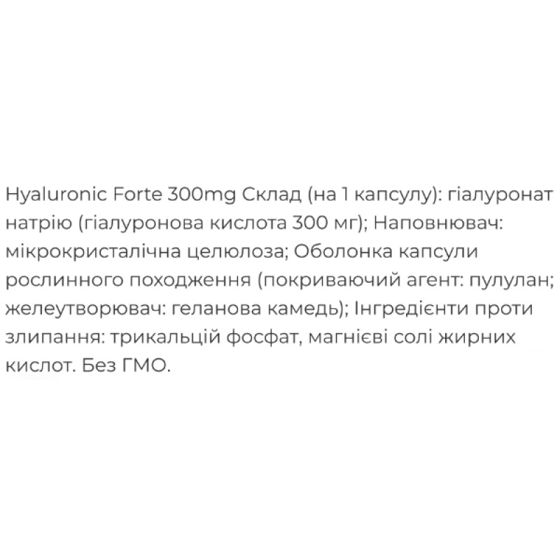 Hyaluronic Forte 300mg: 1 капсула в день (во время приема пищи), запивая большим стаканом воды комнатной температуры, желательно утром. Продолжительность применения: 30 дней. Курс можно продолжить на 30-90 дней.