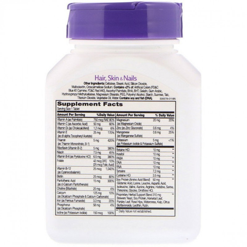 Целлюлоза, стеариновая кислота, диоксид кремния, мальтодекстрин, кроскармеллоза натрия. Содержит <2%: искусственных красителей (FD & C синий № 2 кармин, FD & C красный № 40), аскорбил пальмитат, ВНА, ВНТ, желатин, гуммиарабик, гидроксипропилметилцеллюлоза, стеарат магния, ПЭГ, поливиниловый спирт, крахмал, сахароза, тальк, диоксид титана, растительное масло, вода.