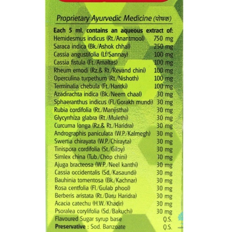 Сироп Суракта Байдьянатх приготовлен из более чем 17 ценных растений, это альтеративный тоник и очиститель крови, он тонизирует функцию печени, устраняет запоры, улучшает циркуляцию крови, таким образом, сироп Суракта полезен для улучшения цвета лица.