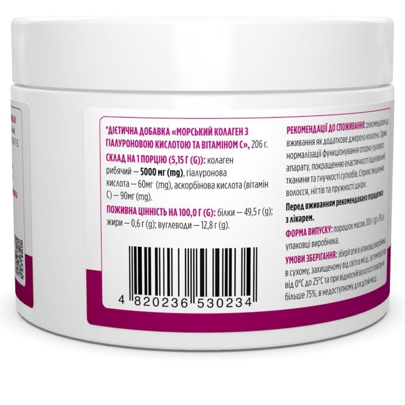 Морской коллаген с гиалуроновой кислотой и витамином С, Marine Sourced Collagen Peptid + Hyaluronic Acid + Vitamin C, Biotus - это высококачественная пищевая добавка от украинского производителя, которая обеспечит питательную поддержку организму, легко усваивается. Коллаген обеспечивает прочность и амортизацию суставов и структуру костей, улучшит восстановление тела и тканей, поддержит рост мышц и мышечную силу, обеспечит здоровое состояние волос, кожи, ногтей; обеспечит антиоксидантную защиту и поддержку печени. Гиалуроновая кислота, входящая в состав, содержится в хрящевой ткани, синовиальной суставной жидкости, стекловидного тела, кровеносных сосудов, кожи. Витамин С в составе улучшает синтез коллагена и повышает его эффективность.