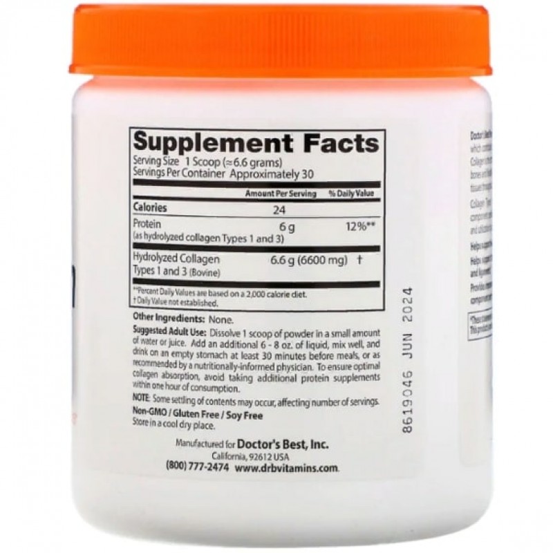Чистый коллаген типа 1 и 3 в порошке от Doctor's Best содержит чистый коллагеновый протеин, который обеспечивает рост и поддержку здоровья тканей организма. Коллаген — это структурный белок, отвечающий за прочность и гибкость костей, суставов, сухожилий, связок, волос, ногтей и других тканей по всему организму.