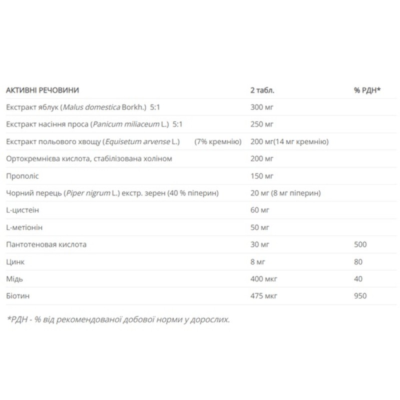 - Рекомендации к употреблению: рекомендуется как источник питательных и минеральных веществ для создания оптимальных условий роста волос, ногтей и поддержание их здорового состояния.