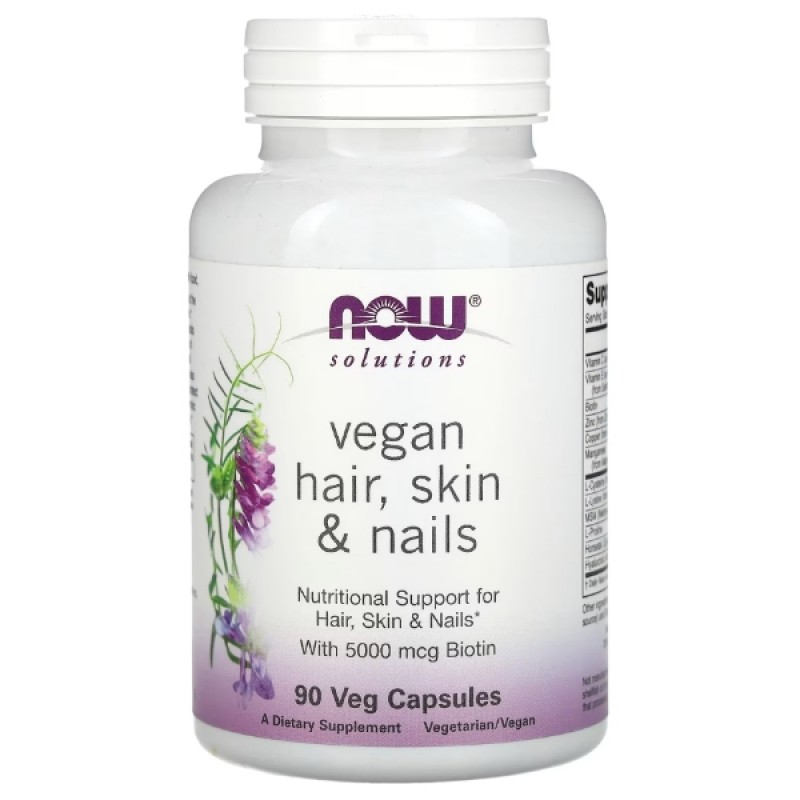 NOW Vegan Hair skin & nails – революционная формула поддержки для здоровья волос, кожи и ногтей, которая работает изнутри, предоставляя полноценную поддержку естественной красоты вашего тела.