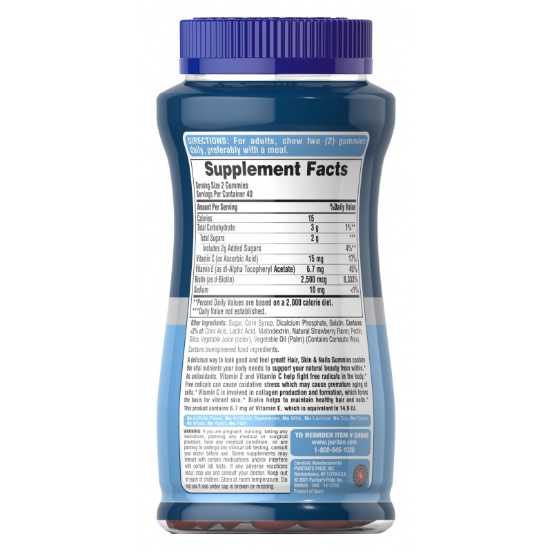 Puritan's Pride Hair Skin Nails Gummies - содержащая жизненно важные питательные вещества, необходимые вашему организму, помогает поддерживать вашу естественную красоту изнутри.