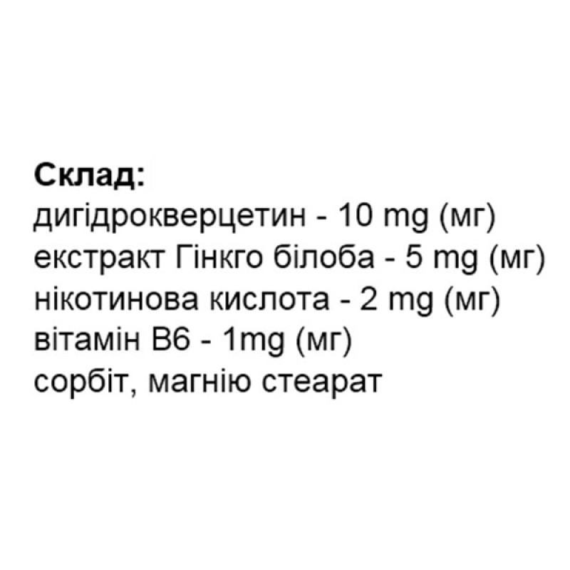 Экстракт гинкго билоба. Активными веществами экстракта флавоноиды, гинкголиды и белоболиды. Они расширяют кровеносные сосуды, улучшают кровоток, тормозят агрегацию эритроцитов (anti-sludge effect), ингибируют действие фактора агрегации тромбоцитов (anti-PAF effect) и, регулируя метаболизм, защищают клетки и ткани от повреждений, вызванных гипоксией.