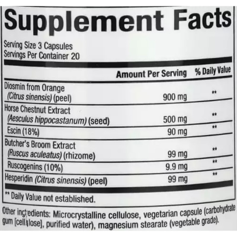 VeinSense содержит диосмин, цитрусовый флавоноид, в микронизированной форме для лучшего усвоения и использования, а также другие фитонутриенты для поддержания здоровой структуры и функционирования вен по всему организму. Способствует укреплению и тонизированию ног. Поддерживает здоровую структуру вен и уменьшает выпуклость вен на ногах.