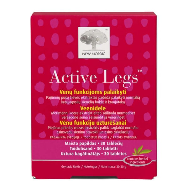 Входящий в состав «Active Legs» витамин С помогает поддерживать образование коллагена, необходимого для нормальной функции кровеносных сосудов. Экстракт коры приморских сосен помогает поддерживать нормальное состояние стенок кровеносных сосудов и кровообращения. Важными также являются разнообразное и сбалансированное питание и здоровый образ жизни.