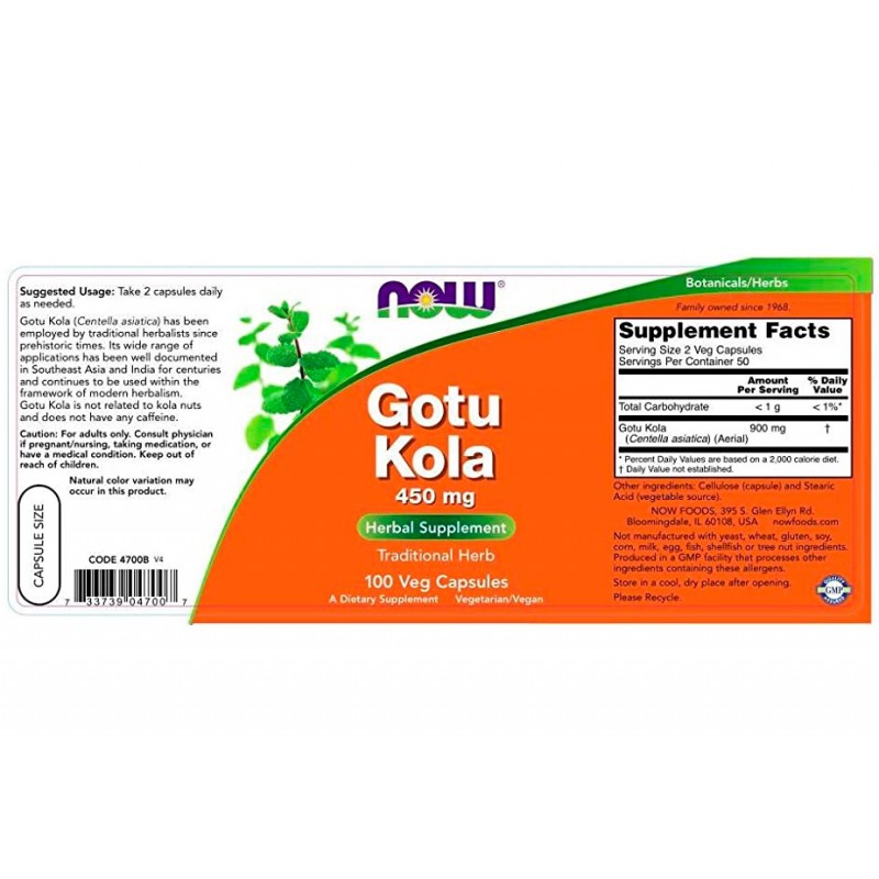 Компания Now Foods рада представить своим поклонникам продукт Gotu Kola, который содержит чистейший, стандартизированный экстракт готу кола в удобной форме капсул. Растение готу кола является природным источником таких полезных веществ, как витамины А, Е, К, группы В, минералы фосфор и магний, сапонины, биофлавоноиды, эфирные масла.