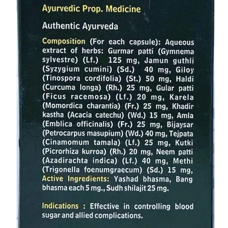 Даябет Гард - очень эффективная аюрведическая формула из 13 растений, мумие, банг и яшад бхасмы, которая не только эффективно снижает уровень сахара в крови, но и стимулирует поджелудочную железу для производства инсулина. Эта уникальная синергетическая комбинация Гурмара, Джамуна, Карелы, Амлы, Нима, Мумие помогает предотвратить осложнения, связанные с диабетом.