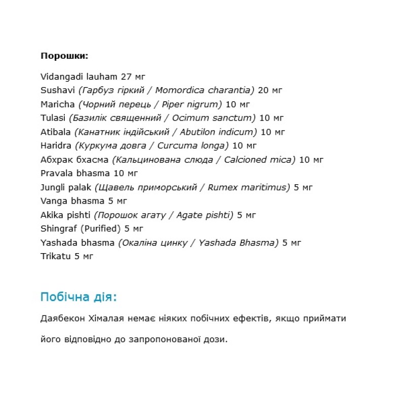 Diabecon Himalaya (Диабекон) – это одно из лучших аюрведических средств для диабетиков. Увеличивает периферийное использование глюкозы. Уменьшает слабость, полиурию, ощущение жжения в пятках и руках (через месяц после начала приема) и жара. Улучшает функцию печени и почек. Уменьшает тягу к сладкому и нормализует аппетит больных сахарным диабетом.
