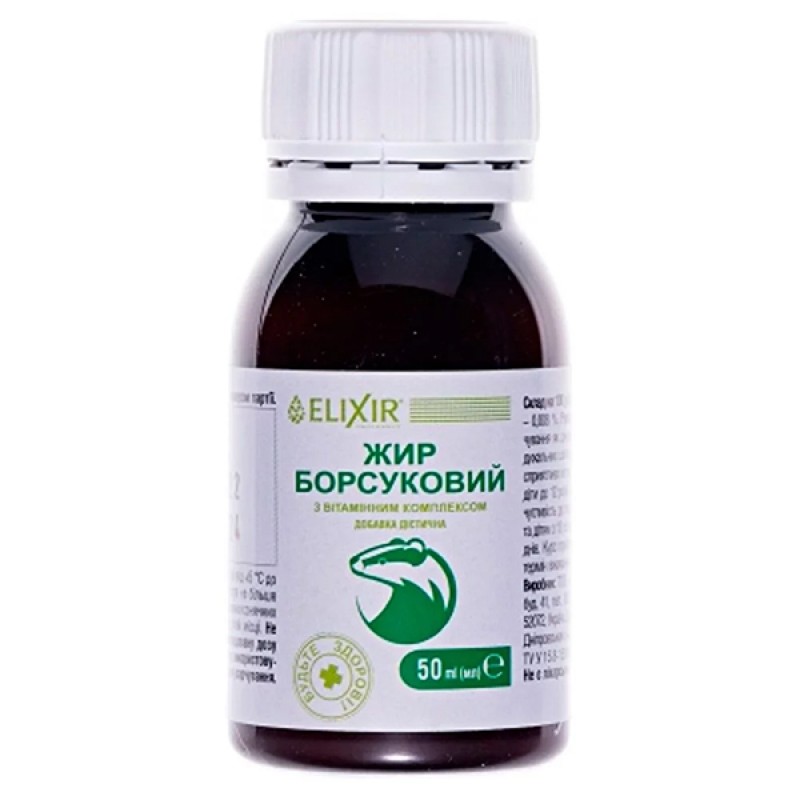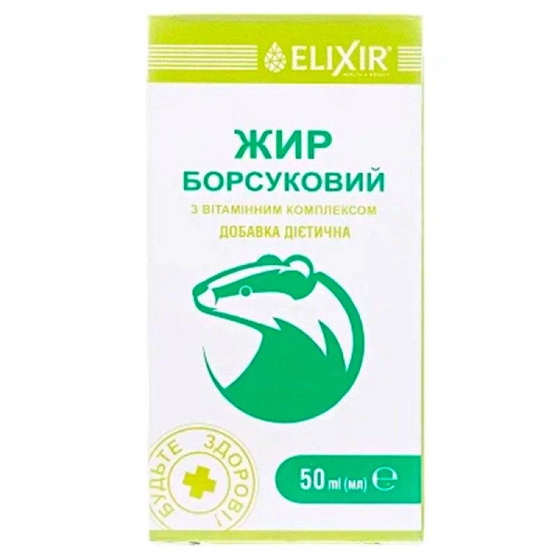 «Борсучий жир с витаминным комплексом» – ценный пищевой продукт. Он содержит более 86% ненасыщенных жирных кислот, необходимых для полноценной жизнедеятельности человеческого организма (Омега-3 и Омега-6), витамины А, В2, В5, В6, В12, D, РР, Е, каротин, фолиевая кислота, пектины, сапонины. При приеме внутрь барсучий жир полностью усваивается в кровь, обогащая ее витаминами, необходимыми организму микроэлементами и органическими кислотами, усиливает белковый обмен, повышает иммунитет организма, регулирует работу кроветворительной системы, оказывает бактерицидное действие на туберкулезные бациллы. При регулярном употреблении нормализуется секреторная деятельность желудка и кишечника, повышается эмоциональный тонус, погашаются гнойные процессы.