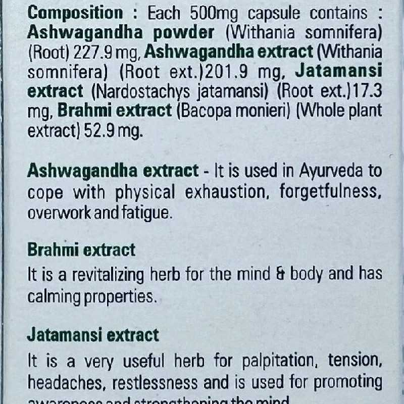 Брахми: это лекарственное растение, которое веками использовалось в аюрведической практике для различных целей, таких как снижение тревожности, улучшение функций памяти, борьба с бессонницей и многое другое. Брахми богат антиоксидантами, которые помогают бороться с повреждением клеток, вызванным свободными радикалами. Также известно, что он улучшает пространственное обучение и удержание информации.