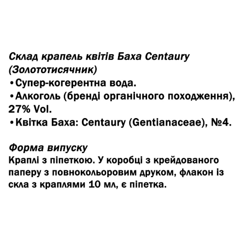 Цветок Баха №4 Золототысячник (Centaury) может помочь людям, страдающим от своего добродушия. Бескорыстное служение человечеству из любви — одна из высших добродетелей, которую только может приобрести человек. Однако в отрицательном состоянии Золототысячника вы делаете это вынуждено. Это состояние характеризуется непонятой любовью, которая проявляется как готовность приносить жертвы.