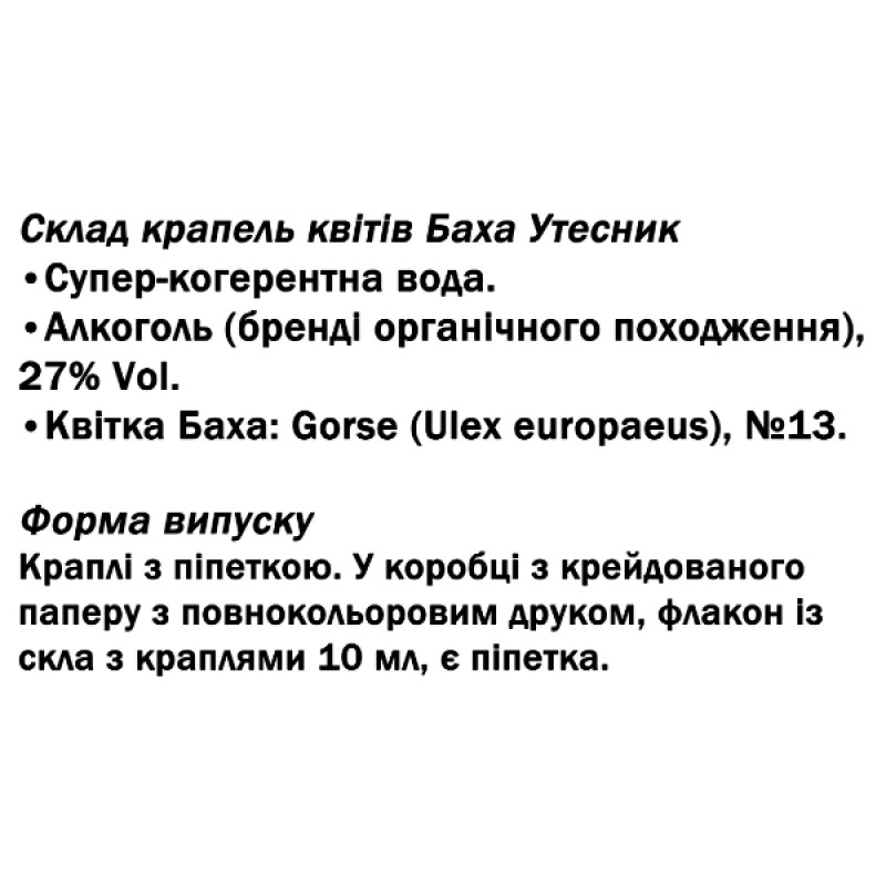 Оставьте безысходность и отчаяние позади, и найдите свет в конце туннеля и новую энергию с цветком Баха Gorse (Утёсник). Во времена, когда всё кажется бессмысленным, взгляд на жизнь может измениться. Цветок может сделать человека более оптимистичным, а значит, и более счастливым и весёлым. В этом состоянии вы развиваете новые силы, выпрямляетесь и осмеливаетесь сделать новую попытку. Самым важным аспектом при использовании этой эссенции Баха, безусловно, является растущее желание смотреть на жизнь другими глазами.