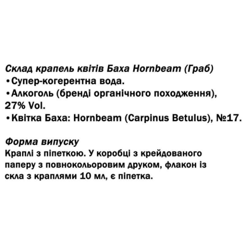 КАПЛИ БАХА № 17. HORNBEAM (Carpinus Betulus, ЦВЕТЫ ГРАБА ОБЫКНОВЕННОГО, ЕВРОПЕЙСКОГО, КАВКАЗСКОГО; ГОРНБИМ, ХОРНБИМ). При утомляемости, чувстве усталости. При нежелании работать, лени и апатии. Когда часто откладываешь дела на потом и терпеть не можешь утро понедельника. При сомнениях в собственной способности справляться с дневными обязанностями. Когда жизнь увязла в рутине и потеряла свой блеск. Цветок энергии. От душевной вялости… к духовной свежести.