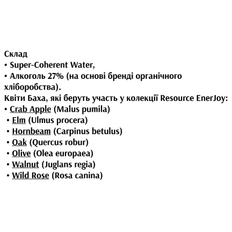 Капли Resource EnerJoy 20 мл — коллекция из семи взаимодополняющих цветов доктора Баха, которая способствует росту вашей энергии и жизнестойкости. Произведена по оригинальному рецепту Э. Баха (1886-1937) на супер-когерентной воде WHITE, национальным лидером добавочной медицины Италии компанией GUNA S.p.a (Милан).