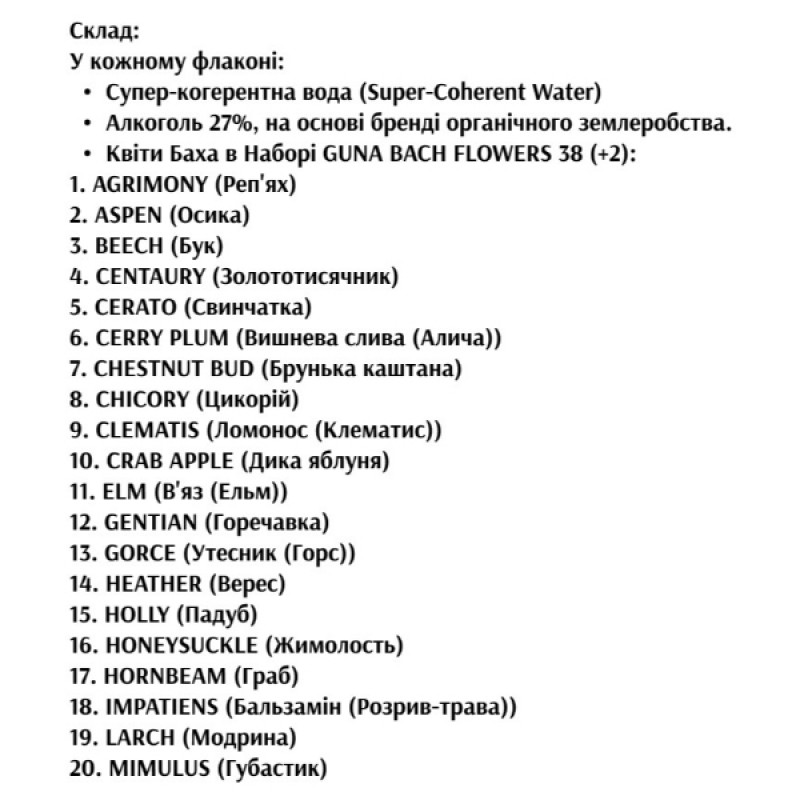 Цветы Баха от GUNA отличают следующие особенности: