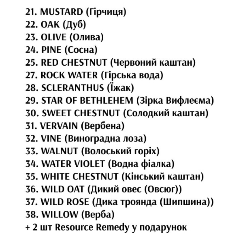 40 флаконов (38 всех эссенций цветов Баха + 2 шт. Resource Remedy)