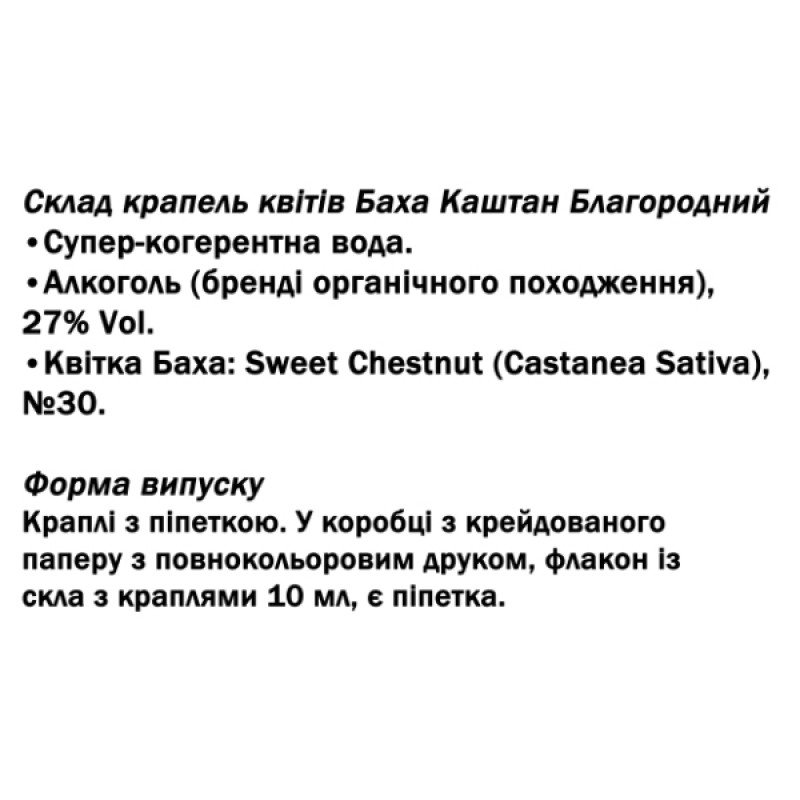 КАПЛИ БАХА № 30. Sweet Chestnut (Castanea Sativa, ЦВЕТЫ КАШТАНА БЛАГОРОДНОГО, СЪЕДОБНОГО, СЛАДКОГО, ПОСЕВНОГО, НАСТОЯЩЕГО; СВИТ ЧЕСТНАТ). Для состояний глубокого отчаяния и чувства безнадежности. При боли от горя. При невыносимых страданиях и сильных душевных переживаниях. В случаях, когда вы больше не знаете что и как дальше делать. Цветок освобождения. От ночи... к свету.