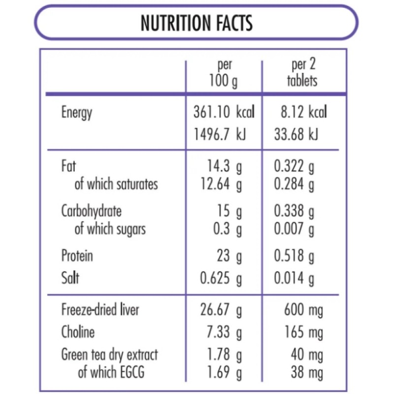 Содержит биологически неповреждённую свиную печень NEORLAND®, Холин, и Эпигаллокатехин-3-галлат, полученный из зеленого чая. Это стало возможным с помощью специальной фармацевтической технологии «сухой заморозки» (freeze-dried, сублимация).