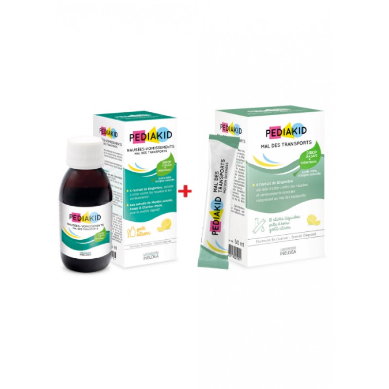 Ребенок страдает от укачивания в транспорте (авто, авиа, железнодорожный, морской), чувствует тошноту, блюет, возбуждение во время путешествий - комплекс PEDIAKID "УКАЧИВАНИЕ" - НАТУРАЛЬНОЕ ПИТЬЕВОЕ СРЕДСТВО ДЛЯ УСТРАНЕНИЯ ТОШНОТЫ, БЛЕВОТЫ, УКАЧИВАНИЯ В ТРАНСПОРТЕ/NAUSEES - VOMISSEMENTS MAL DES TRANSPORTS + НАТУРАЛЬНЫЕ СТИКИ ОТ ТОШНОТЫ, БЛЕВОТЫ, УКАЧИВАНИЯ В ТРАНСПОРТЕ / MAL DES TRANSPORTS
