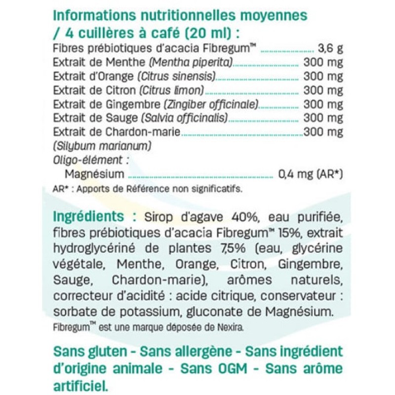 NAUSEES - VOMISSEMENTS MAL DES TRANSPORTS - Натуральное питьевое средство для детей на основе нектара агавы, пребиотиков и экстрактов корня имбиря, листьев шалфея, мять перечной, кожицы апельсина и лимона, плодов расторопши; с магнием. Вкус: мята. Против тошноты и блевоты во время поездок в транспорте (авто-, авиа- и морской транспорт). От 6 месяцев до 15 лет.