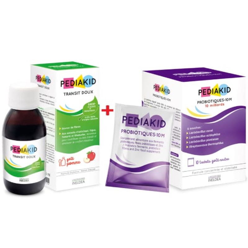 У ребенка нарушена кишечная микрофлора, частые запоры, боль в желудке, пищевой дисбаланс (дефицит фруктов и овощей) - PEDIAKID Комплекс для детей "ЗАПОРЫ " - TRANSIT DOUX + PROBIOTIQUES-10M