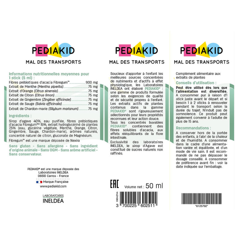 Средство от тошноты, рвоты, укачивания в транспорте, Nauseesvomissements Mal Des Transports, Pediakid является пищевой добавкой, которая подходит даже маленьким детям от 6 месяцов. Это сироп, в стиках, с экстрактами: имбиря, мяты, шалфея, расторопши, лимона и магния. Идеально подходит для ежедневных поездок малыша в автомобиле или для поездок в отпуск (лодки, самолеты и т.д.). Стики удобно брать с собой в дорогу и легко принимать.