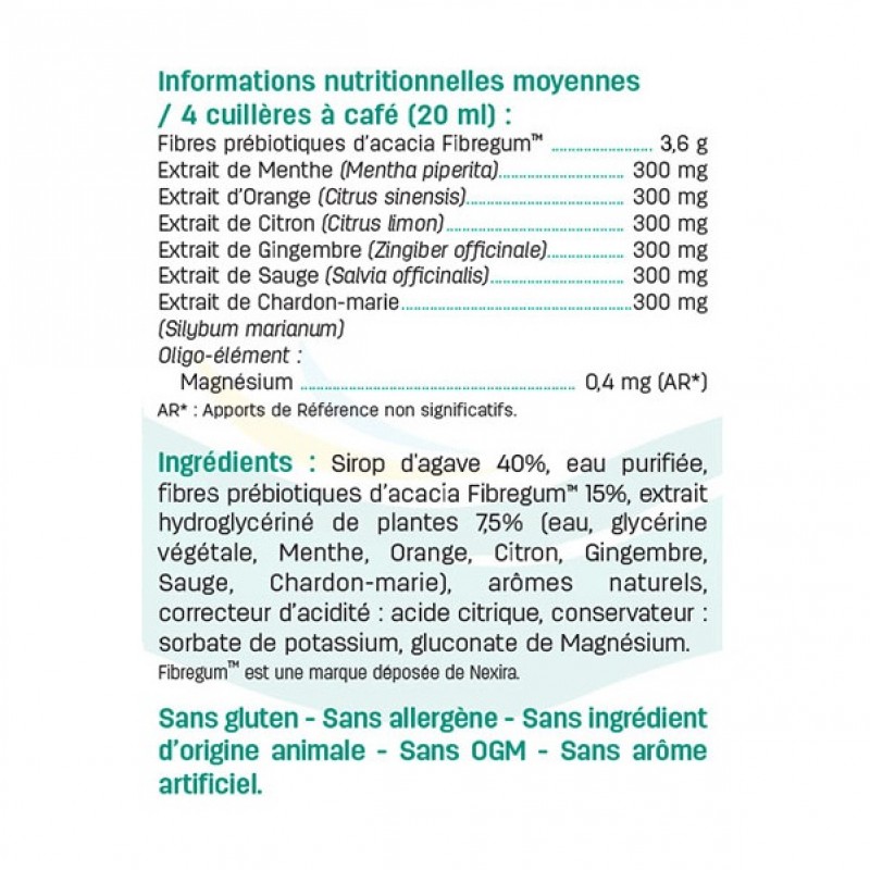 Натуральное питьевое средство для детей на основе нектара агавы, пребиотиков и экстрактов корня имбиря, листа шалфея, мяты перечной, кожуры апельсина и лимона, плодов расторопши; с магнием. Вкус: мята.