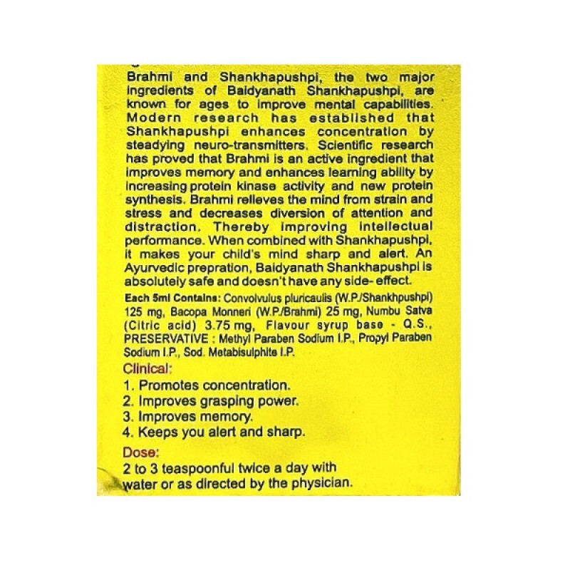 Шанкха Пушпи сироп Байдьянатх (Shankhpushpi Syrup Baidyanath), аюрведический сироп изготовленный в Индии для улучшения памяти и концентрации.