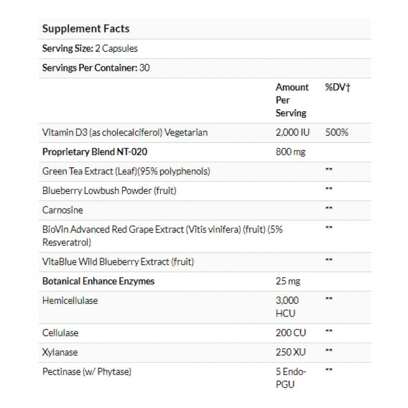 Самое главное для организма чтобы все отделы мозга работали без сбоя слаженно, и для этого необходимо полноценное питание которое содержится в запатентованной смеси: NT-020, голубики, витамина Д, экстракта зеленого чая и карнозина.