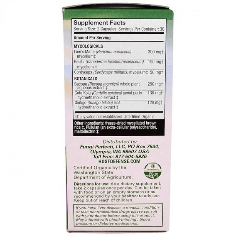 Формула для мозга (Brain) от Fungi Perfecti поддерживает здоровье мозга и нервной системы, поддерживает неврологическую функцию и работу надпочечников, поддерживает здоровье мозга при старении, ясность ума и памяти, поддерживает здоровый кровоток к мозгу.