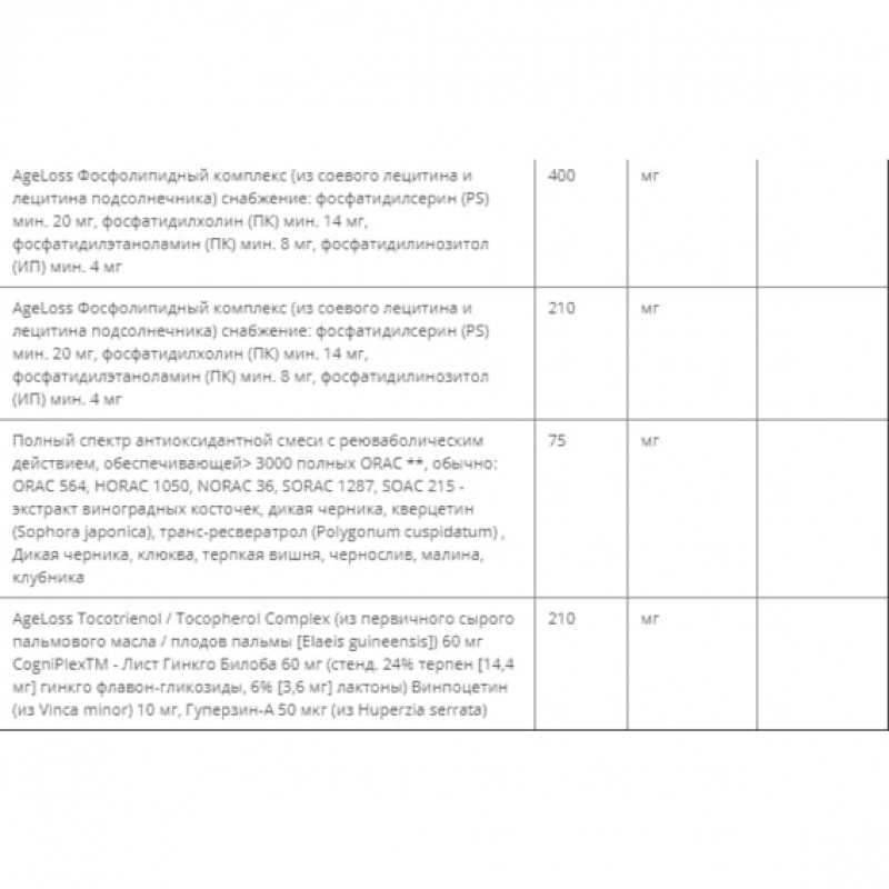 Фосфатидилсерин является строительным блоком клеток головного мозга, необходимых для производства нейротрансмиттеров, энергии мозга и нейрогенеза. Комплекс обеспечивает мощный мозговой набор нейронутриентов, включая повышающий кровообращение гинкго. Питательные вещества - амла, гуава, базилик, лимон, коричневый рис и экстракт листьев карри приостанавливают процессы старения. AgeLoss Brain Support является самой сложной антивозрастной когнитивной добавкой, когда-либо разработанной!