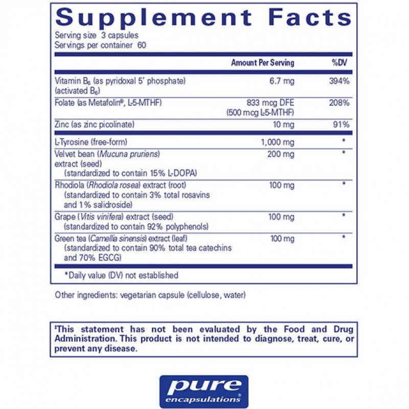 Повышает стабильность дофамина и поддерживает здоровый обратный захват дофамина с полифенолами родиолы и зеленого чая