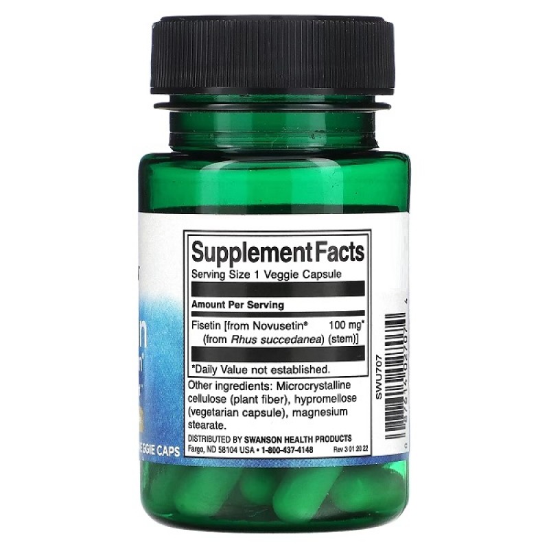 Физетин - является биофлавоноидным антиоксидантом, содержащий натуральный флавонол, который содержится в клубнике, но в незначительном количестве в других фруктах и овощах, сравнительно с другими флавоноидами. Физетин воздействует на клетки, которые изнашиваются и накапливаются в организме. Он сокращает их количество в любом возрасте. Физетин способствует улучшению и сохранению функций головного мозга под воздействием возрастных изменений. Физетин способствует поддержке когнитивных функций управляя окислительным стрессом и поддержке нормальной воспалительной реакции.