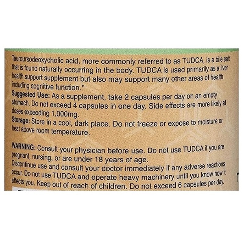 TUDCA (тауроурсодезоксихолевая кислота) - это желчная кислота, которая естественным образом содержится в организме человека. Было показано, что он имеет несколько потенциальных преимуществ для здоровья, включая защиту печенки, противовоспалительные свойства и антиапоптозные эффекты.